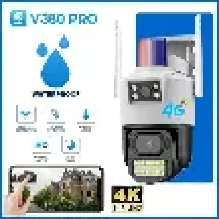 This is a 4G outdoor security camera that connects using a 4G SIM card or Wi‑Fi and lets you monitor your property via your phone using the V380 Pro App — no need for fixed internet!